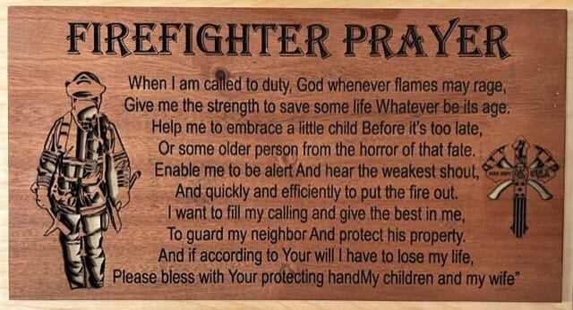The Firefighter’s Prayer Plaque is a great gift idea for any firefighter. A great gift for academy graduation, promotion, or retirement.